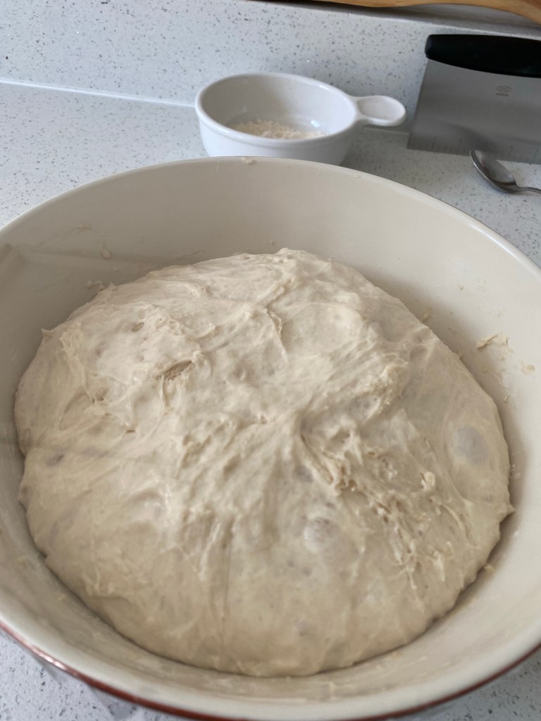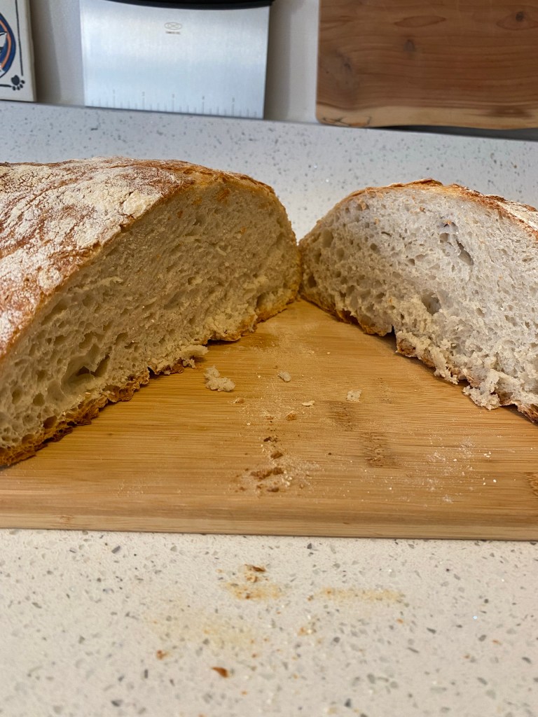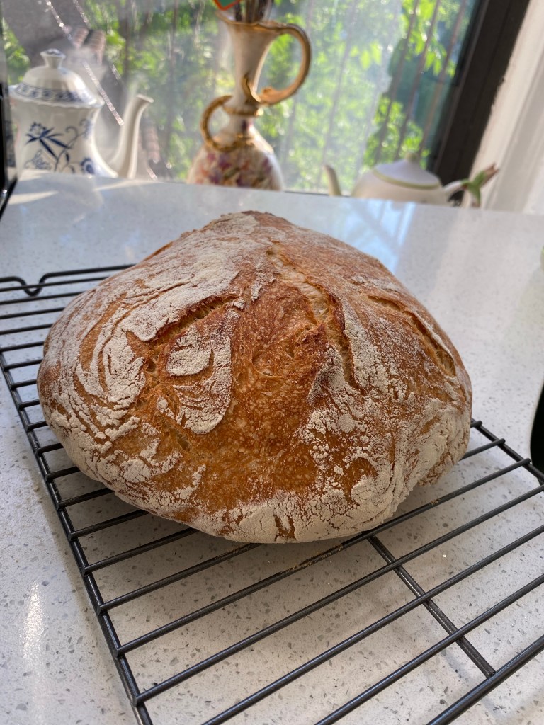 As I cut into my first loaf, all I could think of were the people who had helped me make it. To be clear, I’m being super meta because I was alone while I made it! I don’t even think I could list them all. This got me to thinking about how lucky I am to be loved and to love my family and my chosen family. From the generous gifts of a kitchen scale and mixing bowls (the very same ones they use on the baking show – I know, I have a problem) to physically helping me move the packages to the new kitchen, to sending me a bread knife via Amazon since I was sweating cutting bread with a vegetable knife, and much, much more. I am devilishly blessed with so many amazing people that I call loved ones. I even got to share my first loaf with loved ones, which was an absolute treat.